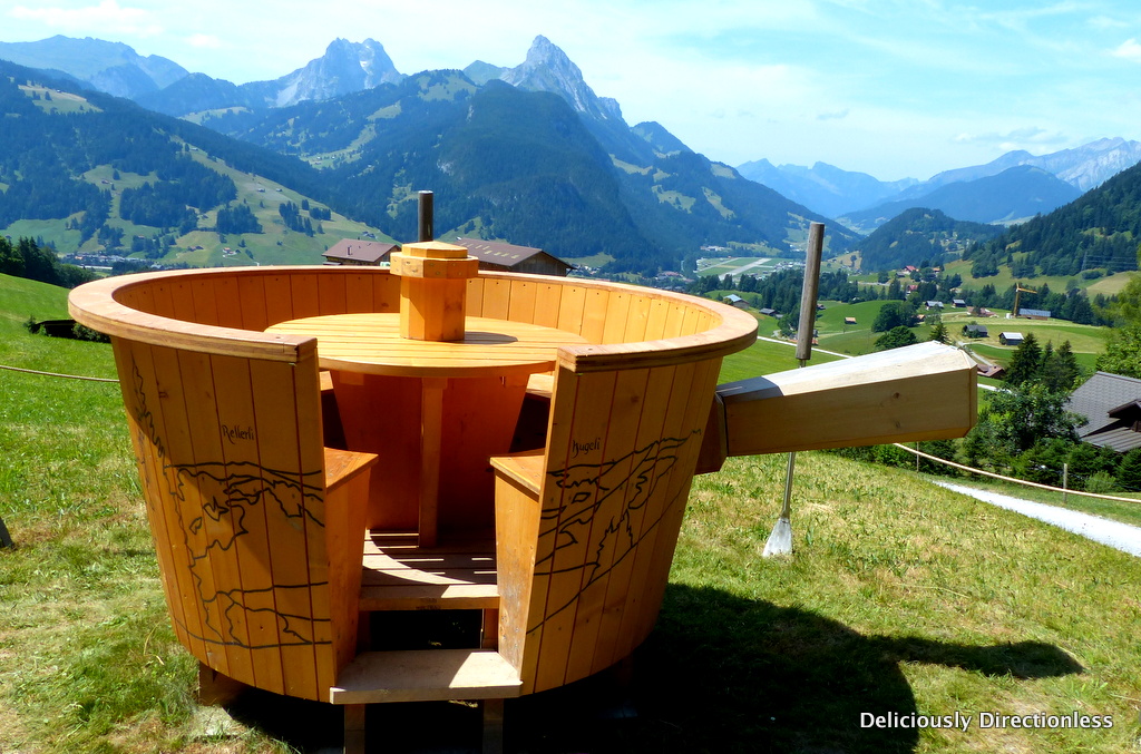 Switzerland and cheese are almost synonymous, and Gstaad is particularly known for its local, specialty cheeses. In Fondueland Gstaad you can enjoy a delicious fondue outdoors, while seated in a massive, wooden caquelon (fondue pot) and admiring the spectacular alpine view. Pick up your fondue kit from designated dairies, complete with a caquelon, a warmer, two types of cheese, crusty bread, plates and forks. There’s one fondue pot in Schlittmoos and two in Vorderi Wispile, each of which has room for 8 people.