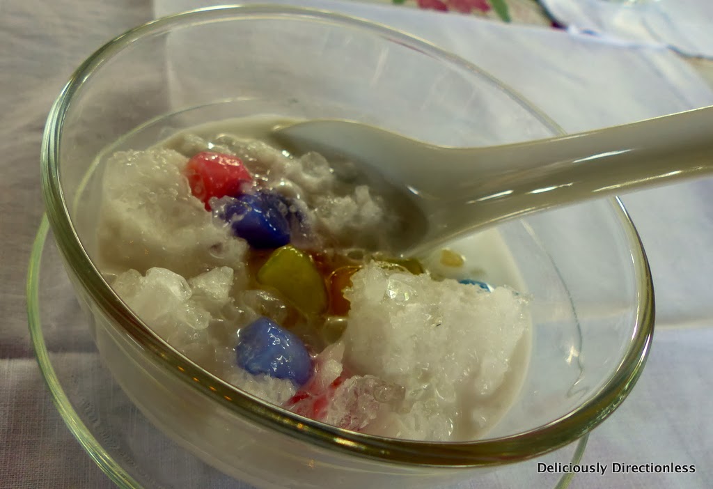 Cashew nuts, Chicken in Coconut Soup and Tab Tim Krob – jewel-coloured water