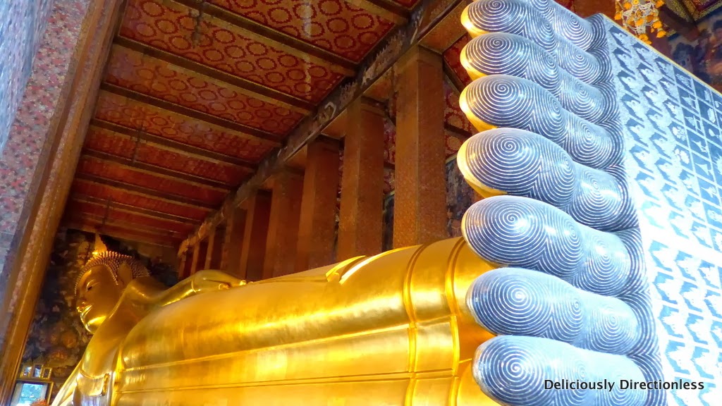 PinNearby Wat Pho is another temple complex that houses the giant statue of the Reclining Buddha. The Buddha’s feet are inlaid with 108 panels of mother-of-pearl depicting auspicious Buddhist symbols.