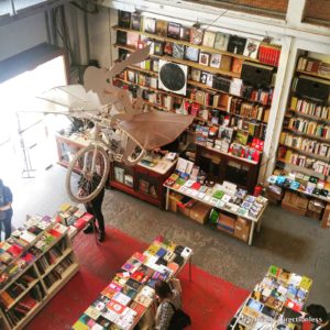 Further afield in the Alcântara neighbourhood is Livraria Ler Devagar. A former printing factory was repurposed into what is arguably the coolest bookstore in Lisbon. An antique printing machine forms the centrepiece. Don’t miss the flying bicycle hanging from the ceiling. The bookstore is in the LX Factory area, which is currently Lisbon’s trendiest quarter with co-working spaces, galleries, cafes, and indie design shops.