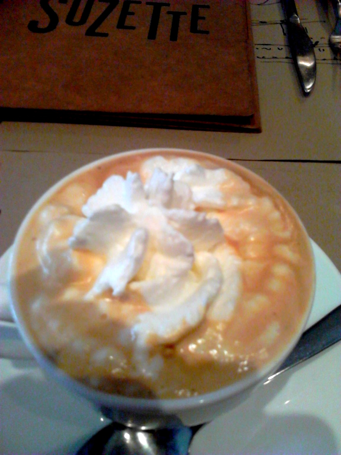 Bonjour! This is a slightly long one since it’s packed with a review, a class and a recipe. Remember the Hot Chocolate post I did earlier this month? (Incidentally, it got featured in Los Angeles Times – Food!) I had written about Suzette, the French Creperie & Cafe in Mumbai, which does the best hot chocolate in town. And as promised, here is a more detailed post about one of my favourite cafes. Suzette has two outlets – in Nariman Point & Bandra. I have been to the Nariman Point branch several times. It’s small, yet cosy and the interiors are done up in warm tones. It also offers outdoor seating – limited to a couple of tables. The cafe has a small book corner, stacked with French books and magazines.