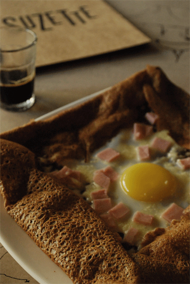 Suzette – midway between a crepe and a sandwich. The Croque