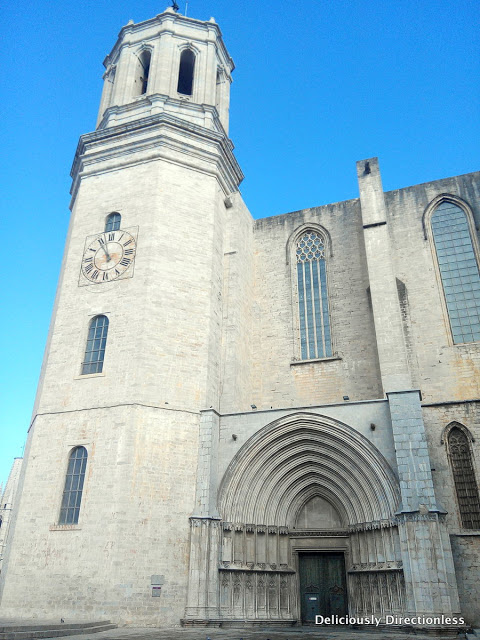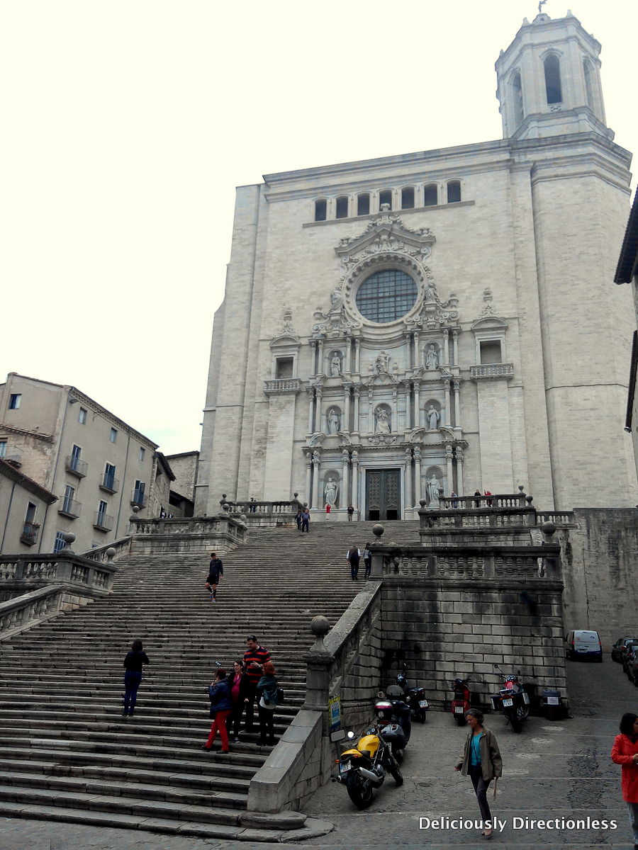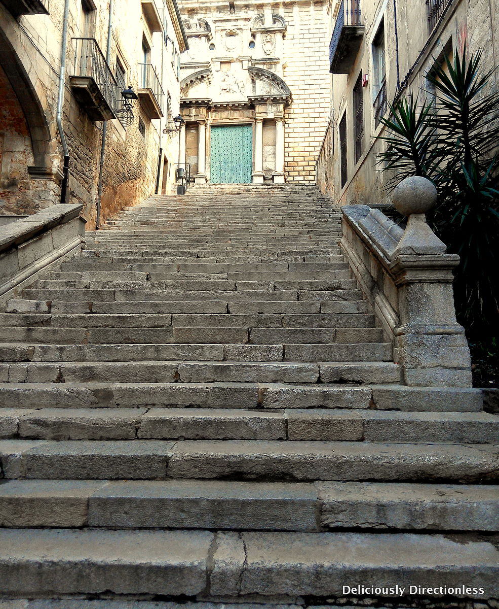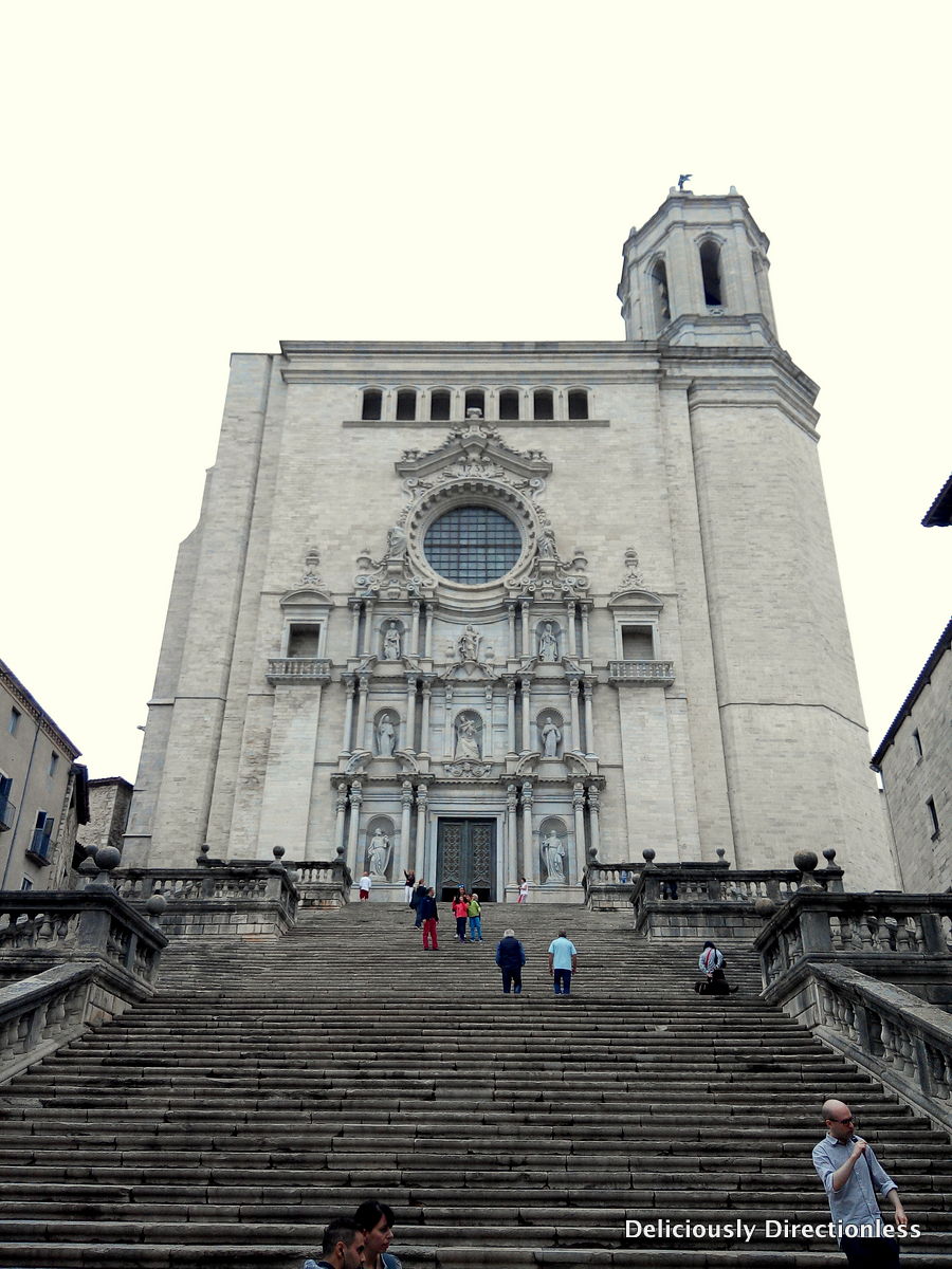 I headed straight to the Girona Cathedral, the massive bulk of which you can see even from across the river. The cathedral was built between the 11th and 18th centuries, in varying styles including Romanesque, Baroque and Gothic. Only the cloister and one of bell towers remain from the original 12th century Romanesque church. The most striking feature of the church is the grand staircase completed in 1607 – 90 wide steps leading up to the Baroque main facade. It’s no wonder that the TV series decided to shoot on these steps, since the cathedral’s architectural elements fit right in with the show’s.