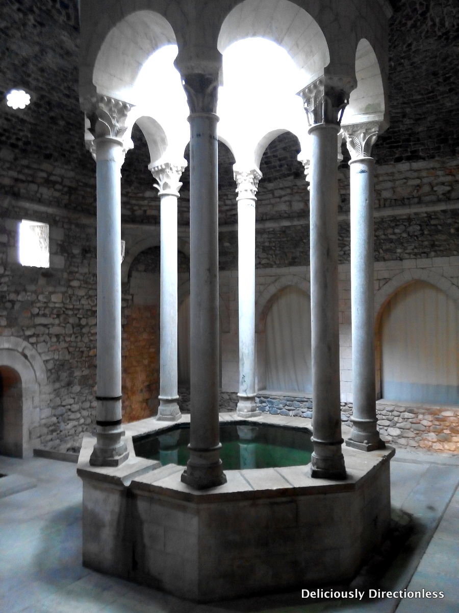 I stumbled upon the Banys Arabs, the 12th century Arab Baths built in Romanesque and Moorish styles. There’s a €2 entrance fee, and you can descend underground to see the Roman-style baths and the striking central pool surrounded by slim, tall columns that support a cupola on top. Some Braavos scenes have been shot here too.