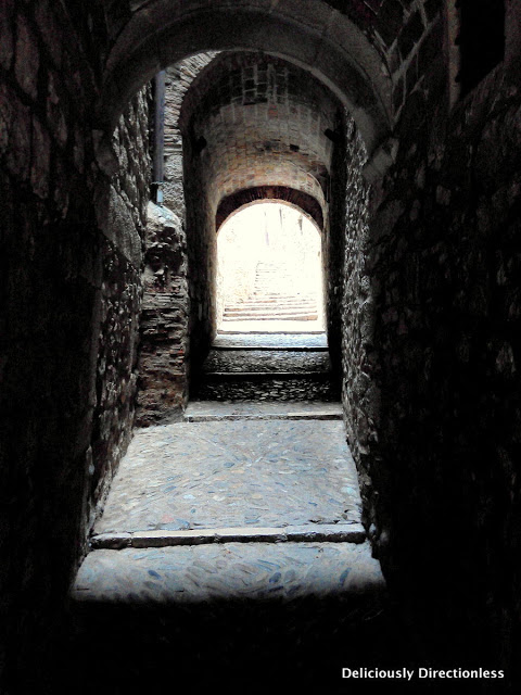 I descended the steps of the cathedral (stopping for a coffee in the square) and walked through the Portal de Sobreportes, a tall gate first built by the Romans in the 3rd century. You can still see the original Roman-era stones at the base of the gate.