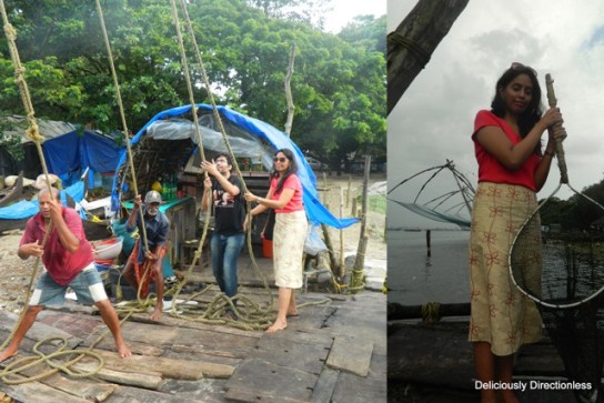 About the fishing bit – when we were taking pictures at the Chinese Fishing Nets, the fishermen invited us onto the contraption that is the net. Got some great shots and tried our hand at hauling in a catch!