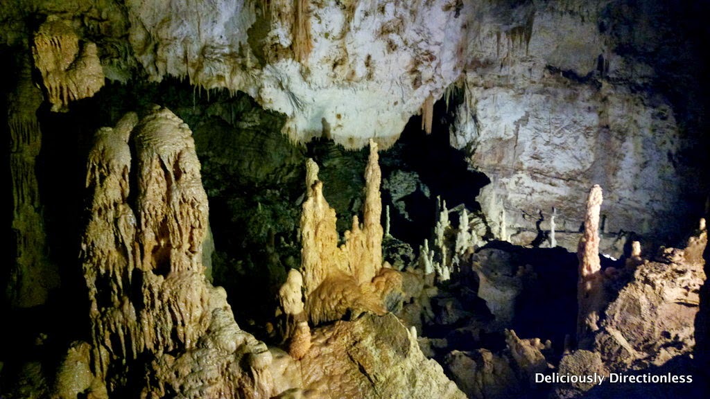 So there I was, all alone, underground, with weirdly shaped limestone formations for company. It was at the end of the tourist trail, so no people came that way. Once in a while an odd sound like a drop of water or a falling stone would ring out, but other than that it was deathly quiet. After a few minutes, I kind of got used to the silence. I had the entire place to myself so I wandered about a bit and spent a happy 15-20 minutes naming the formations around me. My favourite was the ‘bear’, which looked as if it might spring up from its crouching position at any time (no photos, as the husband had taken the camera with him). After about 30 minutes of silence, I could hear approaching voices and Graziano emerged from the narrow opening, followed by the husband and the others – all spectacularly muddy and in need of a good hosing down. I have literally never been more happy to see another human being, and couldn’t wait to head back up into the sunlight 🙂