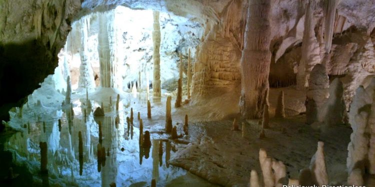 We had had an early lunch in Ancona and begun our 50-odd kilometres drive towards Genga. The folks at Life Marche magazine, who had organised our stay and experience in Le Marche, had promised us an adventure, and we were looking forward to it. The Frasassi Caves (or Grotte di Frasassi) is one of the largest subterranean cave systems in Europe. It was discovered fairly recently, in 1971, and has been open to public from 1974. Of the 18 kilometres of underground caves that have been explored, just 1 kilometre is open to guided public tours. It’s likely that the cavern system is much larger, some estimates putting it at 35 kilometres long.