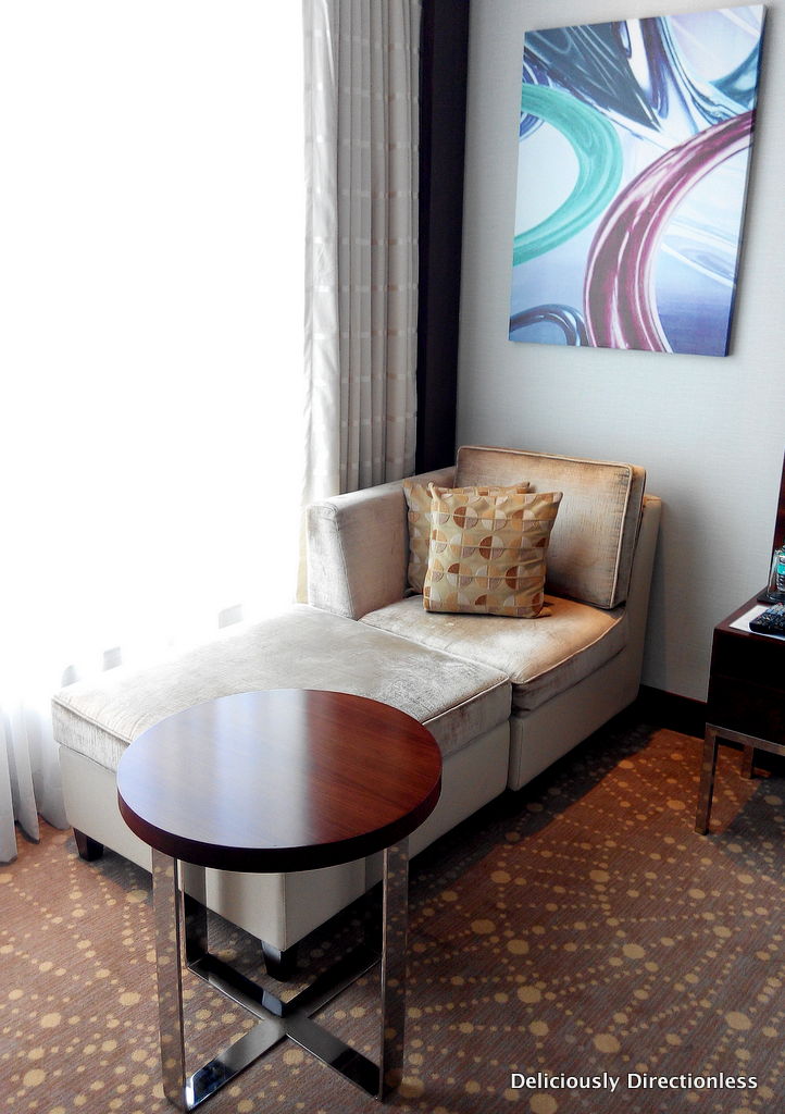Our room was large & well-appointed. The French windows let in a lot of light and its ledge was my favourite reading place. There was also a convenient settee next to the window to lounge about on. The bed was comfy and the hotel has thoughtfully provided reading lights. There’s ample storage space and a safe is available as well.