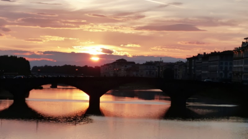 We arrived on a rainy day, but by evening the rains had stopped and the sky was pretty in pink and purple, reflecting beautifully in the Arno.