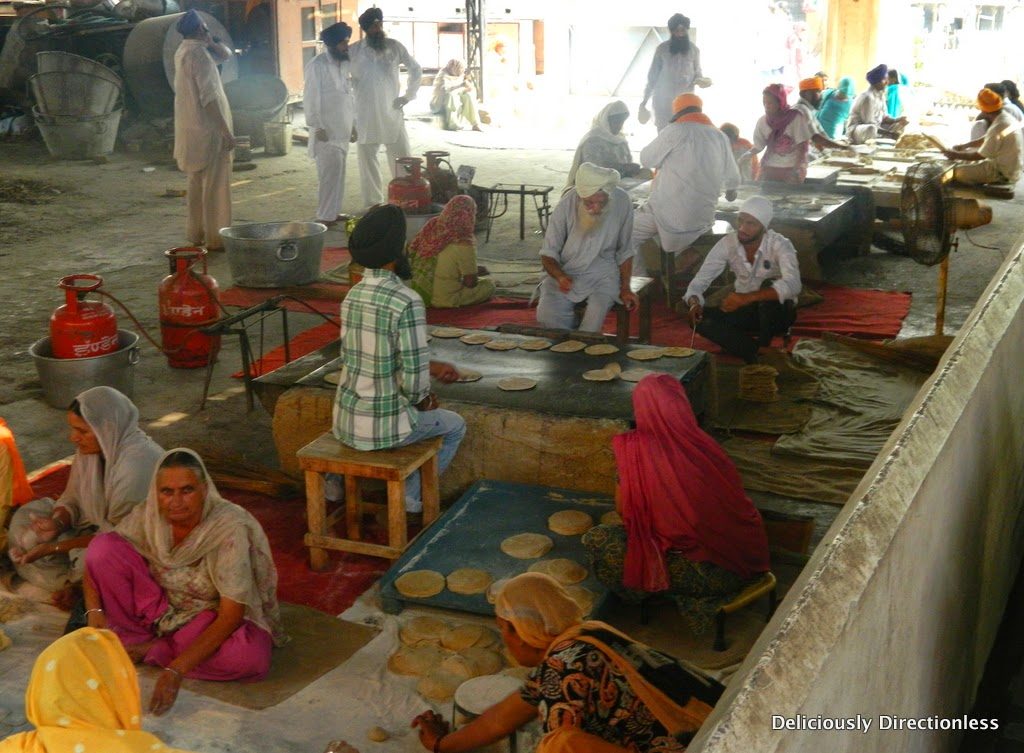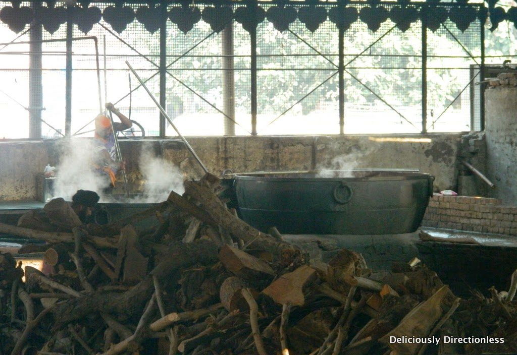 In fact, because the gurudwara has a small staff, much of the work here is done by volunteers who peel, chop, cook, and serve the thousands of devotees and tourists who flock to the Amritsar’s No. 1 tourist attraction. I see groups of women cleaning and chopping brinjals for the day’s meals. Elsewhere, volunteers use long rods to stir bubbling vats of dal. The air is thick with the pungent aroma of onions, garlic, and spices. Volunteers sanguinely brave the rising steam from the vegetables, dal, and kheer.