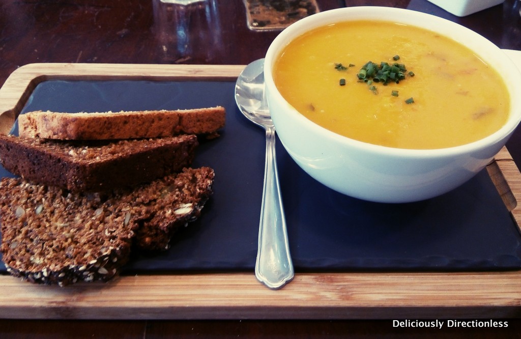 PinThis was, hands down, my favourite cafe+restaurant+deli+shop in Dublin. Probably because I had my first meal in Dublin here, most certainly because I wandered in here cold & hungry and had the most heartwarming soup and some of the best bread I have ever had (I kid you not!). Avoca is essentially a sprawling, family-run business manufacturing exquisite handwoven products, clothing, home & kitchenware, perfumes, soaps, candles etc. There are 11 stores across the country. The store at Suffolk Street is spread over seven levels, including a deli and a food store in the basement and a cafe on the topmost floor. The cafe is bright and open plan, with large windows looking out over the city.