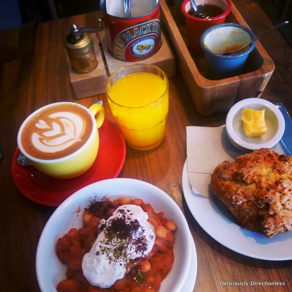 PinA small, indie cafe on Capel Street, Brother Hubbard serves excellent 3fe coffee; a double shot of espresso is standard – my kinda place! I had a breakfast of champions here – a breakfast special where, for €9.95 you can get a hot drink + OJ + toast / (a massive) scone / scroll + porridge / granola / beans (which come topped with feta yoghurt and a sprinkling of sumac – delish!).