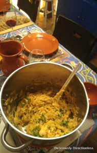 I ate bacalhau is many forms during my trip, but my hands-down favourite dish is bacalhau à bras, which is what José whips up for me. He cooks the codfish with onion and garlic, and then adds eggs beaten with salt and pepper, and thin, fried potato sticks, finally garnished with parsley and black olives.