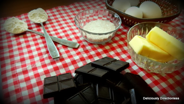 Dark Chocolate (I used Bourneville Rich Cocoa, which is 44% cocoa. You can go