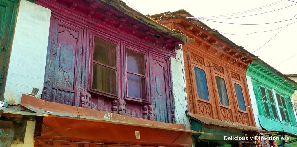 Almora’s bazaars are narrow stone-paved alleys, lined with tiny shops. But the most striking feature of the markets are these colourful windows and galleries, right above the shops.