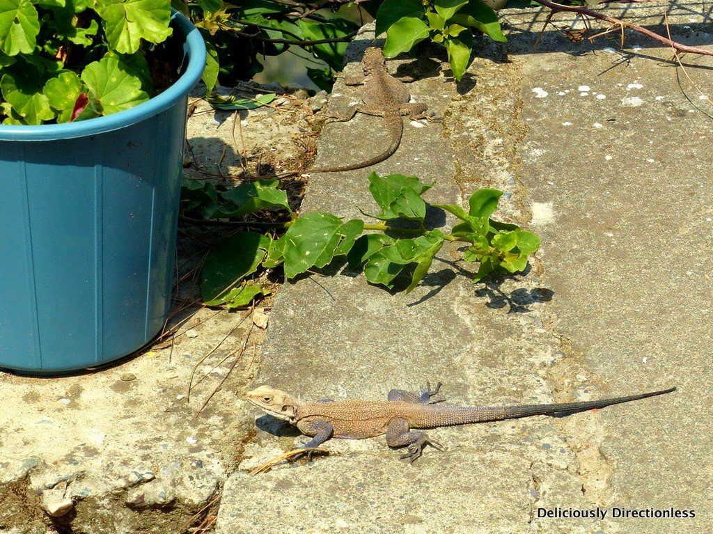… butterflies flitting about, bees buzzing, fat garden lizards doing push-ups (no, really!)…