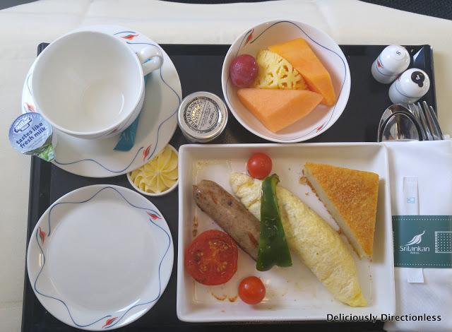 The breakfast menu listed both international and local dishes. There was a choice between the Sri Lankan breakfast staple of kiribath or milk rice, served with chicken curry and sambal. Though I love the coconutty flavours of this dish and absolutely freak out over sambals of all sorts, I cannot really stomach curry first thing in the morning… So I settled for a boring Spinach & Cheese Omelette. It turned out to be quite good and was accompanied by chicken sausage, roasted tomato, and potato rösti (which was like a thick cake rather than the normal rösti you’d expect).