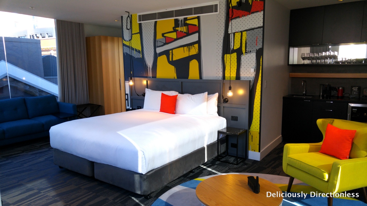 I loved the unusual way in which the room numbers were displayed, such a cool way of using light and shadow! I had a loft room on the top floor, a stylish and contemporary split-level space done up in bright colours and with the same attention to detail that I saw at Ovolo Southside in Hong Kong.