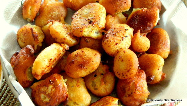 a high flame. Drop little dumplings of the batter in it and deep fry. Drain off