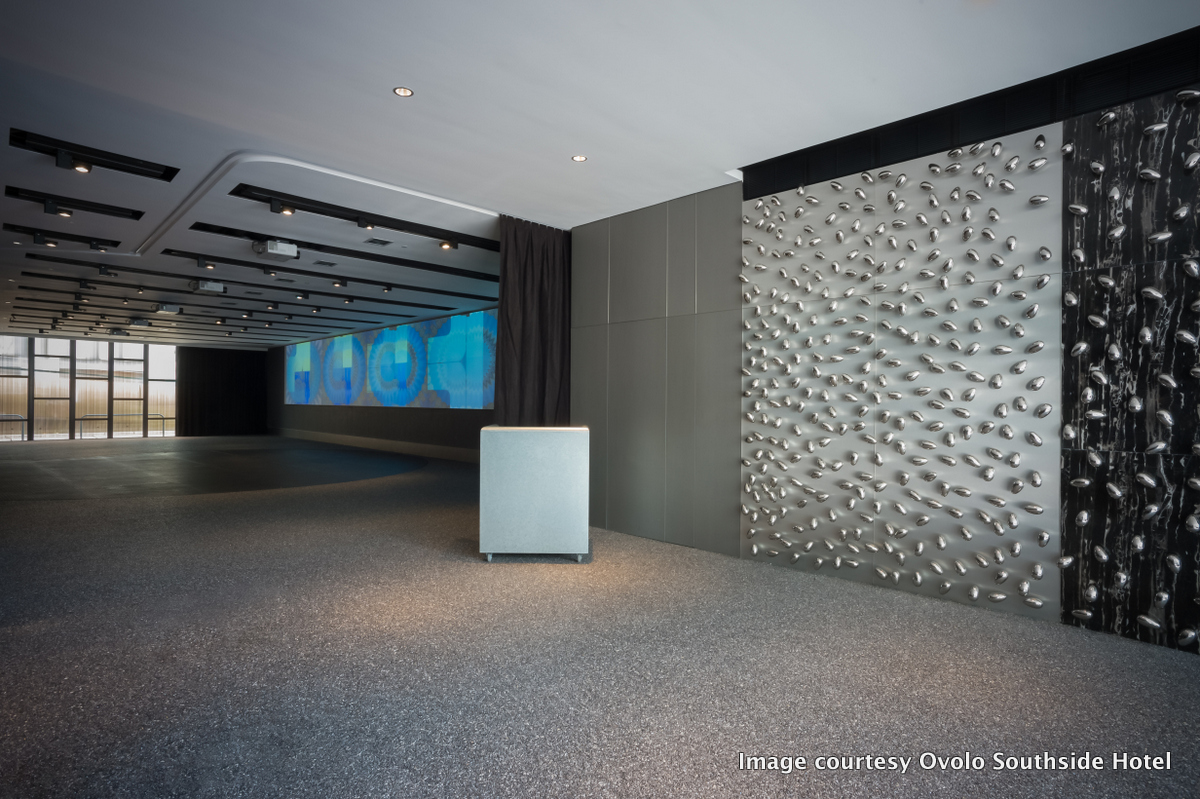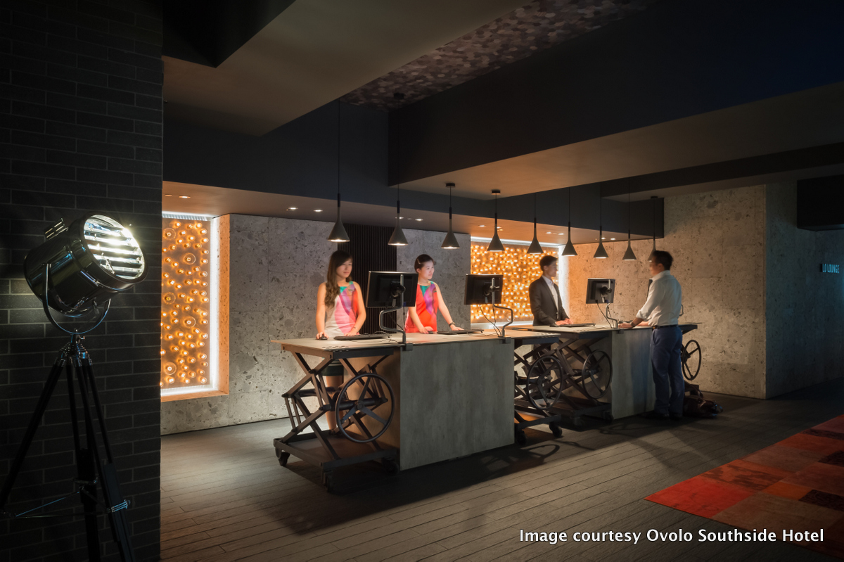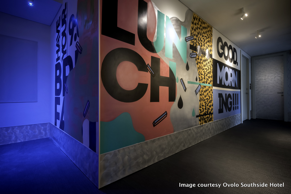 Hipster meets industry-chic. Ovolo Southside is a boutique hotel with a difference. I loved the quirky, colourful ambience of the place – right from the egg (an Ovolo symbol) installation at the entrance to the striking wall art adorning the hotel, all of which has been done by local artists. Being a former industrial building, the hotel has a slightly grungy feel to it, but not too much as to put off the regular business traveller. The Lo Lounge is the focal point of the hotel, where you can work, network or just relax. There are several work desks here with some cool light fixtures, and a pool table if you want to take a break.