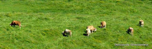 We had to change three trains to get to the top – from Interlaken to Grindelwald, from Grindelwald to Kleine Scheidegg and finally onwards to Jungfraujoch. On the way, there were gorgeous views of picture-perfect villages, grazing cows (I love watching cows & sheep grazing…), and soaring mountains.