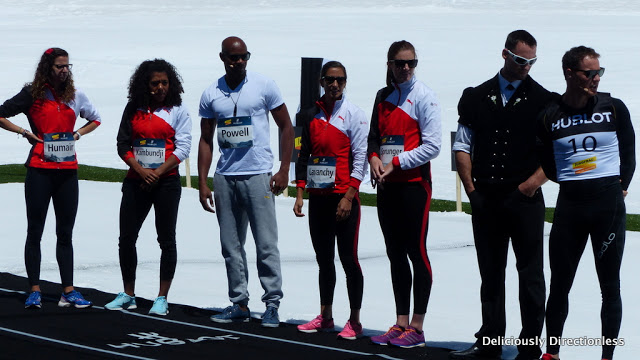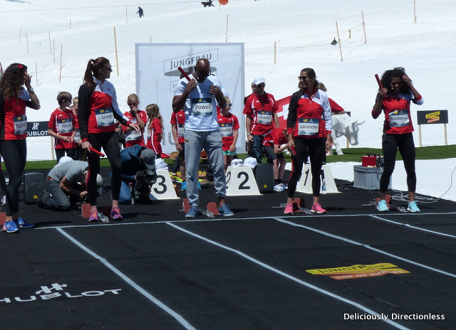 The event began with a relay race, with Powell and the Swiss Women’s 4 X 100 metre relay competing with each other, along with schoolchildren. It was fun watching these amazing athletes run and also coach the young kids along.