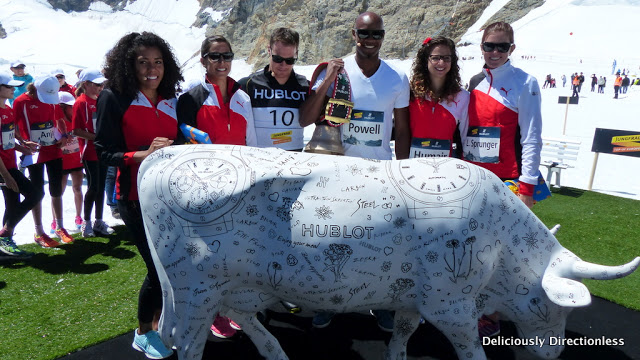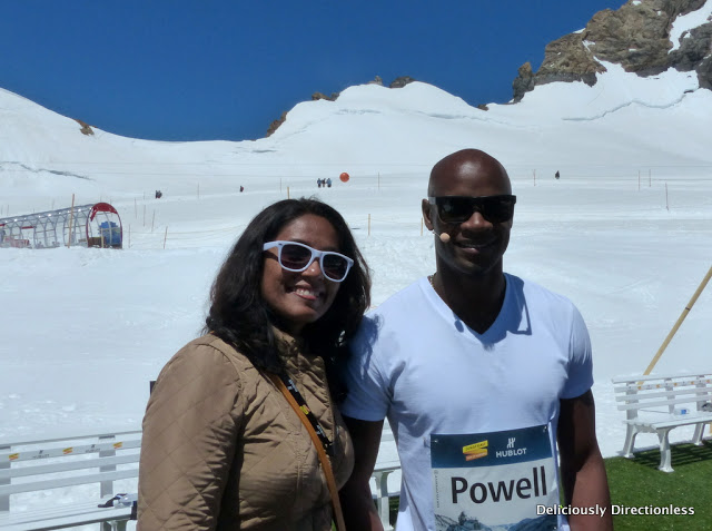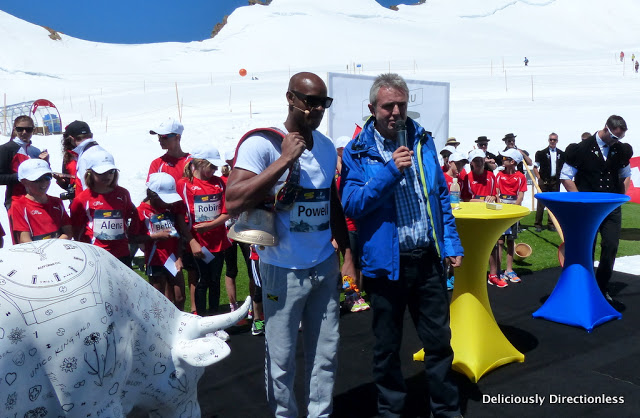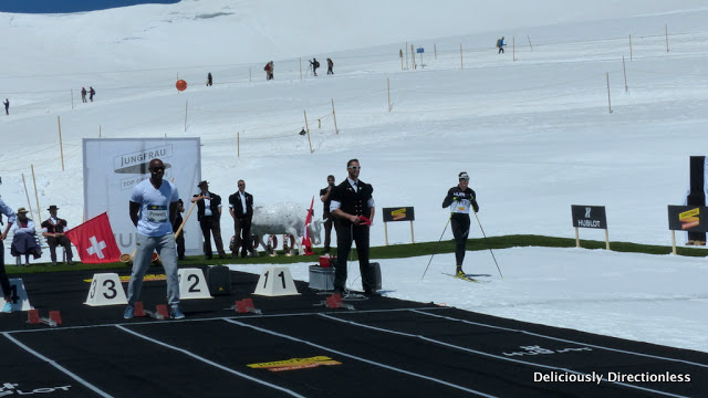 The event was co-sponsored by Hublot & Jungfrau Railways, and was an exhibition race between two great athletes – Asafa Powell (the Jamaican former world record holder in 100 metres sprint, an Olympic champion, and one of the fastest men in the world) and Dario Cologna (Swiss cross-country skier with several Olympic golds and World Cups under his belt). And it was no ordinary race – Powell was going to sprint down the track and Cologna was going to ski alongside!