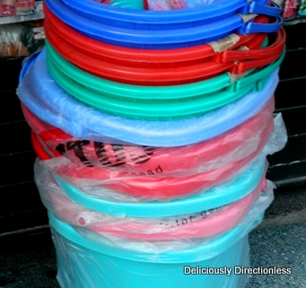 Thanks! They are colourful shopping bags hung outside shops 🙂