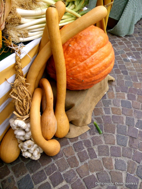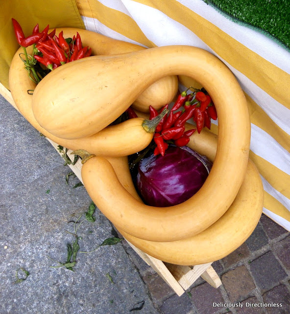 We drove from Asti, past rolling hills, vineyards and the odd town or two, and arrived in Alba, just as the Sunday farmers’ market was being set up. We browsed around the stalls, heaving with various varieties (and shapes) of squash, local salame and cheese.