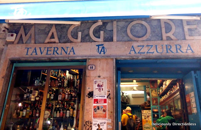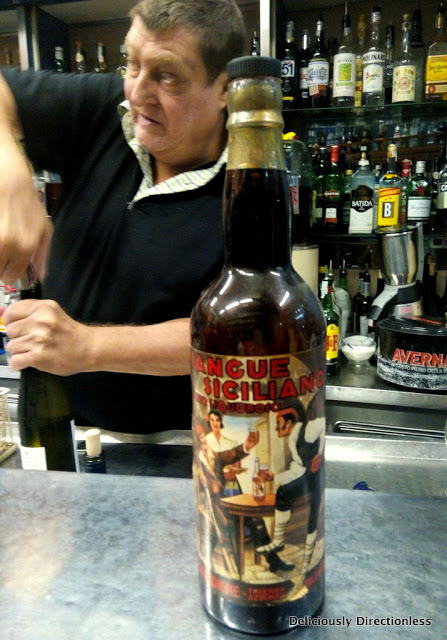 Next stop is a Palermo institution, Taverna Azzurra in the Vucciria market. “How about some Sicilian blood” Romeo jokes, but after the experience with the frittola I’m a bit wary. Turns out Sangue Siciliano is a dessert wine, which is blood-red in colour and cloyingly sweet.