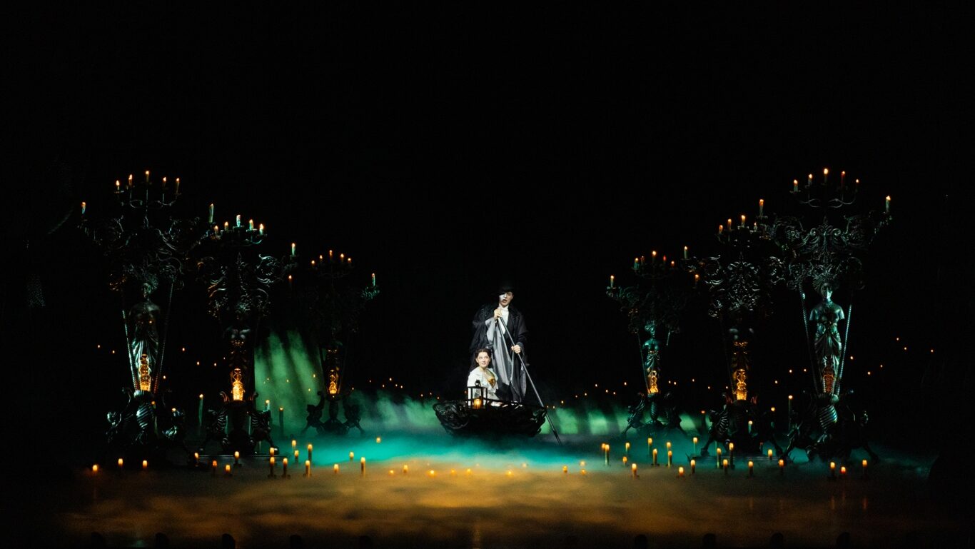 The Grand Theatre has hosted many acclaimed international shows since its opening two years ago, including The Sound of Music, Mamma Mia, and Life of Pi. However, the staging of The Phantom of the Opera is on a never-before-seen scale, whether it’s the sumptuously Baroque opera house setting or the eerie Gothic underground cavern where the Phantom lurks. In a feat of theatrical ingenuity, the stage transforms into a lake on which the Phantom and Christine ride in a boat amid the mist. “I love the transition between the Phantom stealing Christine away during Point of No Return into them suddenly driving the boat downstage. It’s so theatrical and exciting,” says Roxmouth.