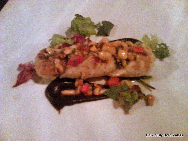 which was served with baby greens and hazelnuts, a smear of prune chutney and