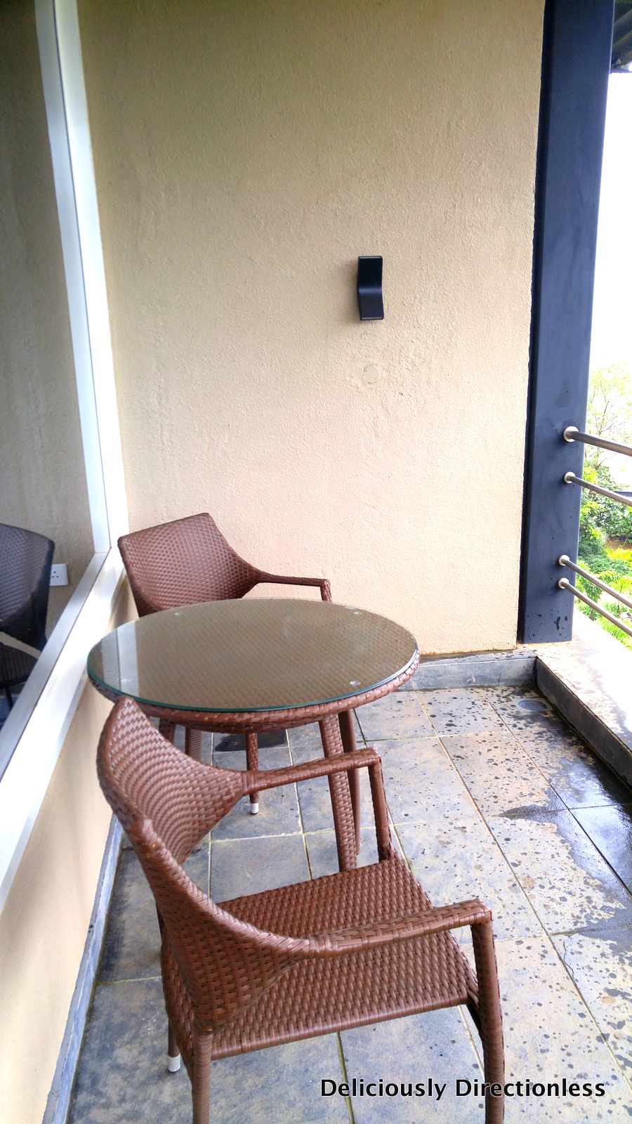 After downing a warm spinach welcome drink (wellness begins right at the entrance), I was whisked to my room in the Arjuna Grove. The big comfy bed beckoned as did the sunken bath next to the window. I loved the floor to ceiling windows that bathed the room in natural light. I stepped outside to the attached balcony and spent some time lounging in the chair watching the rain fall softly. My favourite part of the room was the big purple chair and ottoman inside the room – the perfect perch for a cup of herbal tea and a book.