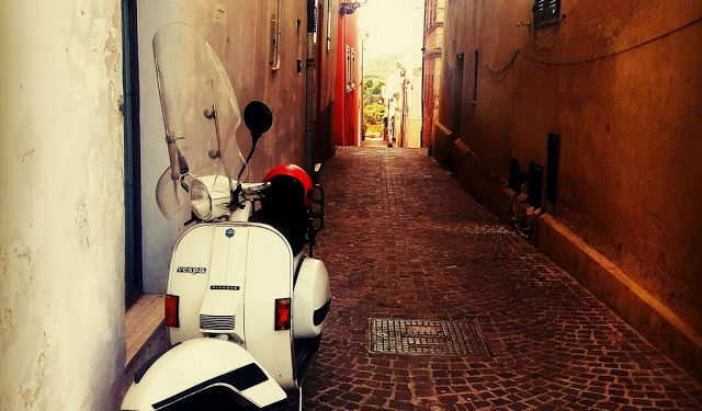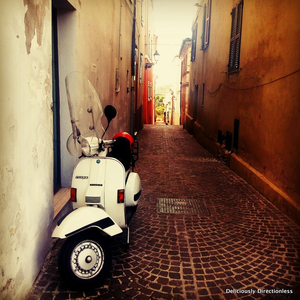 I started off my ‘Alleys of Italy’ series with this gem from Sirolo, a town in Le Marche. The black & white cobbled stone pattern, the burnt sienna walls, the quintessentially Italian white Vespa, and the rolling greens of Marche’s countryside just visible at the far end – Sirolo is a pretty little town in the Ancona district of Le Marche, and is known for its pristine beaches. From its medieval town centre you can get a sweeping view of Marche’s Adriatic coastline, and of Monte Conero – a limestone mountain whose steep slopes slide straight down to the sapphire sea.