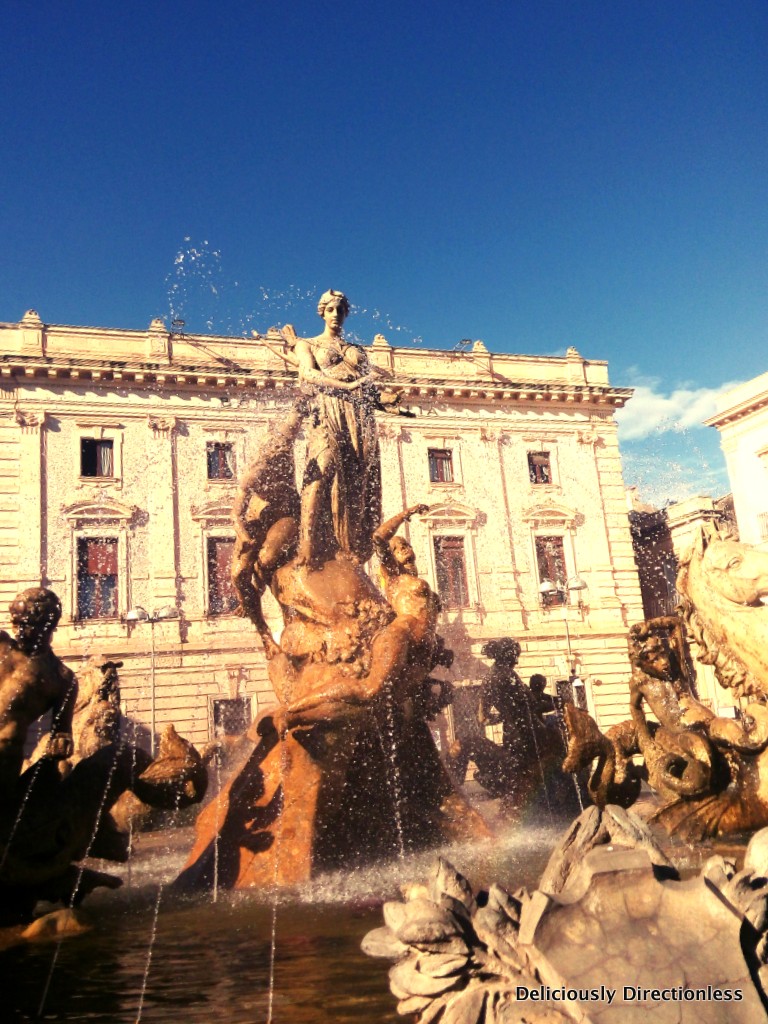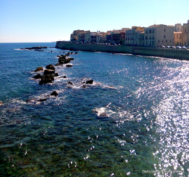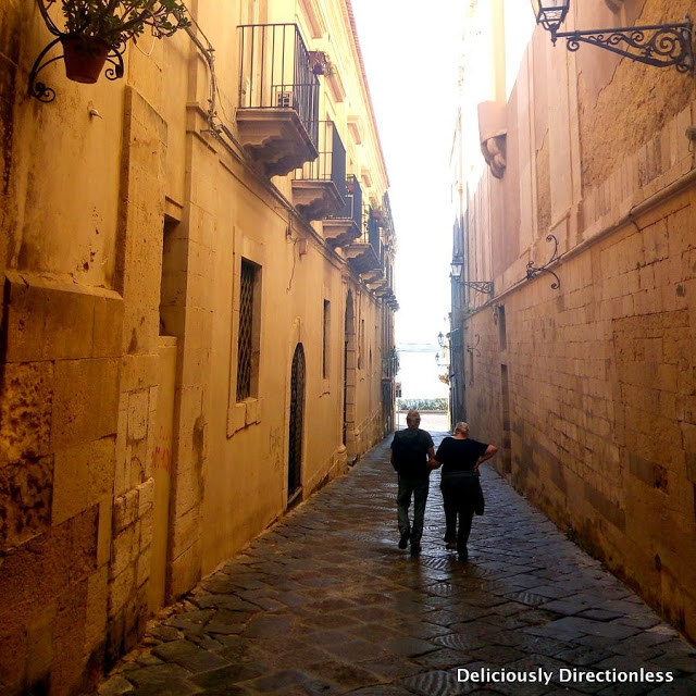 Ortigia is a small island off Siracusa, Sicily. Myths and legends abound on this tiny island, which has a long history going back to the ancient Greeks. I loved its gorgeous seafront, overlooking the azure Mediterranean. Many of its pale pink & yellow houses are peeling, and there are vendesi signs (for sale) around. Yet, it’s a place to slow down, dream a bit, and maybe walk off into the sunset together…