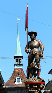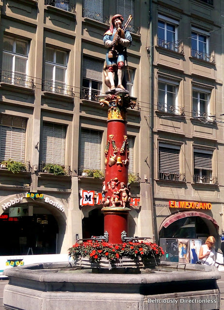 PinPinThe Kindlifresserbrunnen (Ogre Fountain) on Kornhausplatz shows a grotesque ogre gobbling children – Bernese parents have long used this fountain as a threat to discipline their misbehaving children! The Pfeiferbrunnen or the Bagpiper Fountain depicts a barefoot bagpiper, apparently suggesting his exclusion from society. There’s the Simsonbrunnen on Kramgasse, showing the biblical story of Samson slaying a lion with his bare hands, and the Schützenbrunnen or the Musketeer fountain on Marktgasse in front of the Zytglogge (Clock Tower).