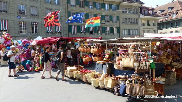 After the tour, I head further down Marktgasse, just beyond the Käfigturm (Prison Tower, and the second city gate) and to Bärenplatz where a fruit, vegetable and flower market is held ever day between April & October, and later in December. I wander around feasting my eyes on colourful bunches of lilies, roses and sunflowers, and on big wooden tubs full of summer fruits. I buy some sun-warmed apricots and nectarines to savour as I make my way back to my AirBnB apartment in the Matte – no longer a working class neighbourhood (or a red light district), instead now filled with young families, couples and students, giving the area a youthful buzz.