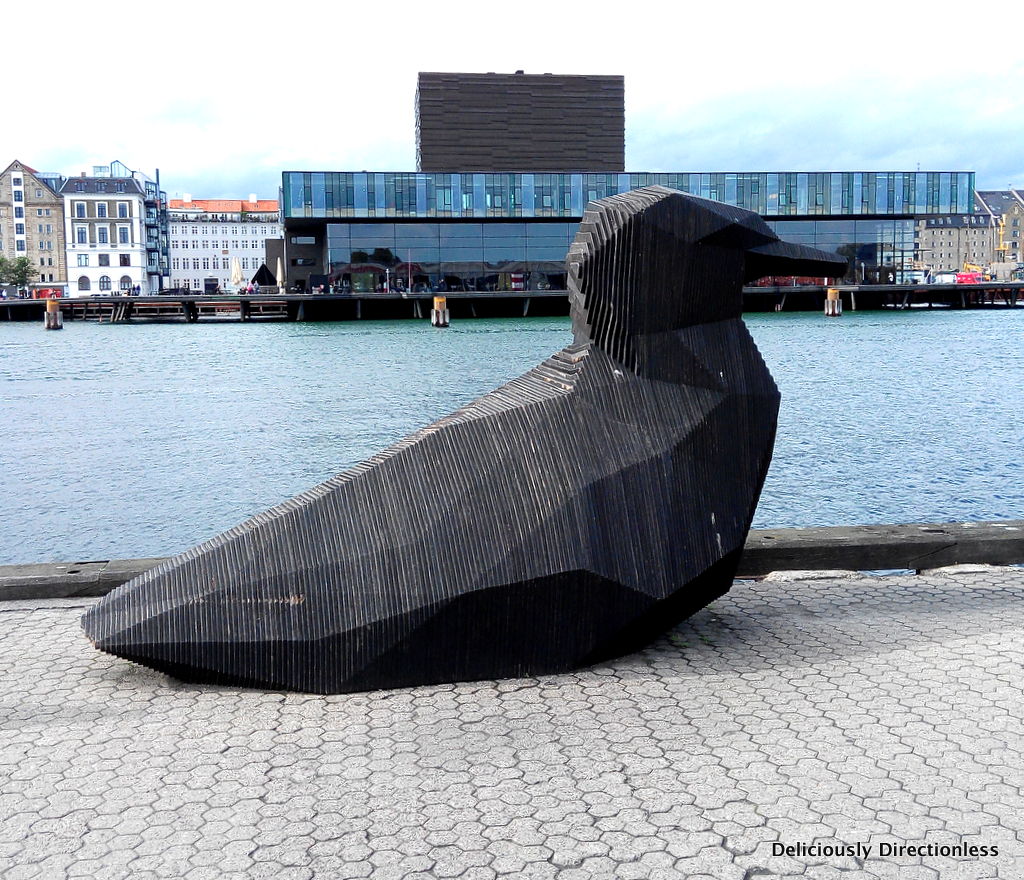As you can see, the popular Little Mermaid is conspicuous by her absence. That’s because I didn’t go pay her a visit. I just caught a glimpse of her on the canal boat tour, so here’s a picture of her back. Notice the cascading curls on her back? Not a perspective you usually see. Oh, and I have no idea what that photo-bomber is doing, and I don’t want to know!